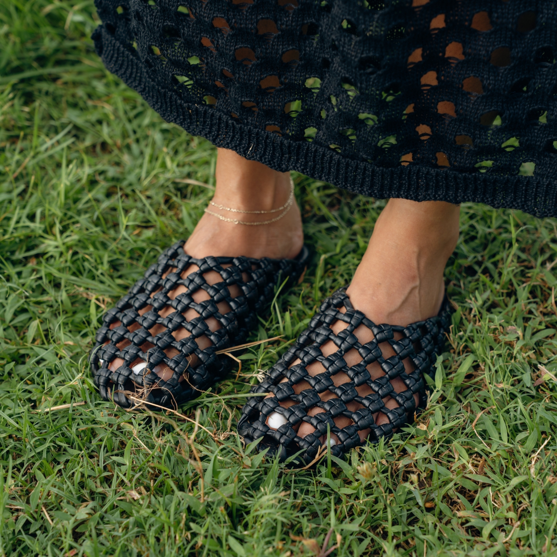 Jelavu - Cloud Leather Woven Sandals - Black Leather